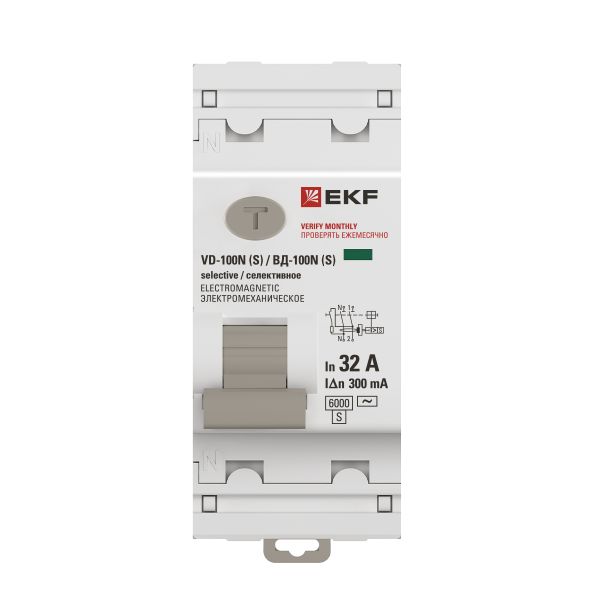 Выключатель дифференциального тока ВД-100N (S) 2P 32А 300мА тип AC эл-мех 6кА PROXIMA EKF |