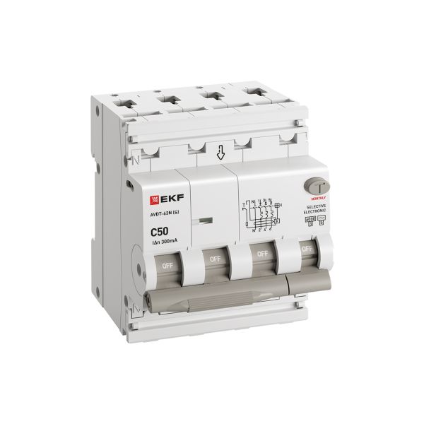 Автоматический выключатель дифференциального тока селективный АВДТ-63N (S) 3P+N 50А 300мА характеристика C тип AC электронный 6кА PROXIMA EKF |