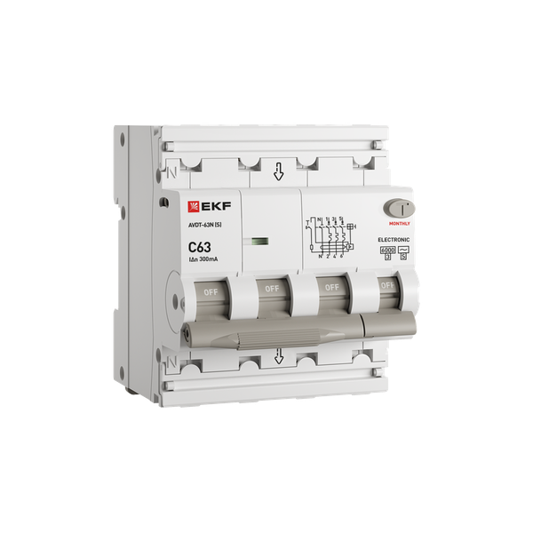 Автоматический выключатель дифференциального тока селективный АВДТ-63N (S) 3P+N 63А 300мА характеристика C тип AC электронный 6кА PROXIMA EKF |