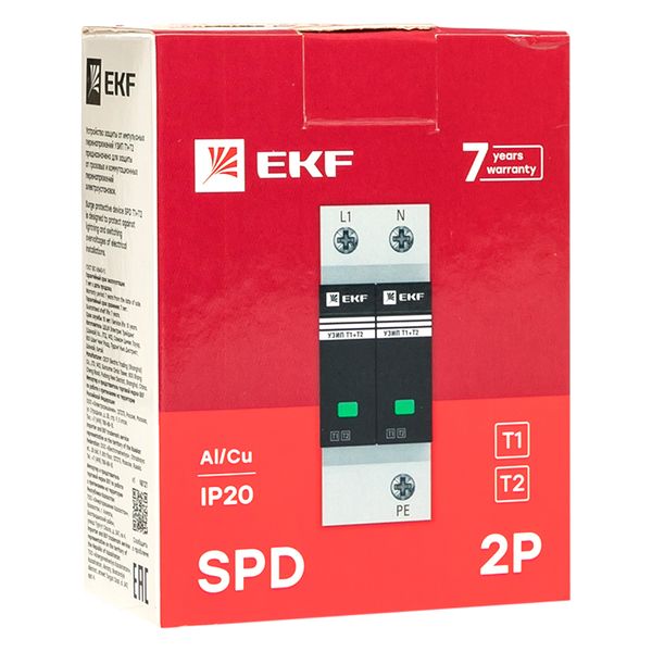 Устройство защиты от импульсных перенапряжений Т1+Т2; Iimp-12,5kA; In-20kA; Uc-275В; 1+1 EKF |