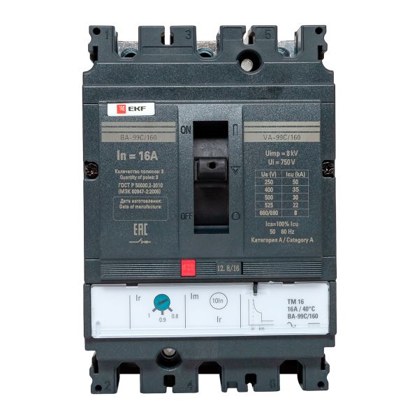 Выключатель автоматический ВА-99C 160/16А 3P 35кА EKF |