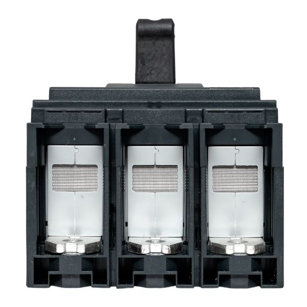Выключатель ВА-99С выполнен в виде моноблока и состоит из основания и крышки с фальш-панелью, в которой имеется окно для рукоятки управления и толкатель кнопки «Тест» – для проверки механизма отключения выключателя.Основание выполнено из термостойкой пластмассы, не поддерживающей горение и являющейся несущей конструкцией для присоединительных зажимов, блок ротоактивных контактов с двумя дугогасительными камерами представляет собой жесткую сборку в отдельном корпусе, механизма управления, блока защиты от сверхтоков и перегрузки (расцепителя). Крышка закрывает все подвижные элементы механизма управления и внутренние токоведущие части.