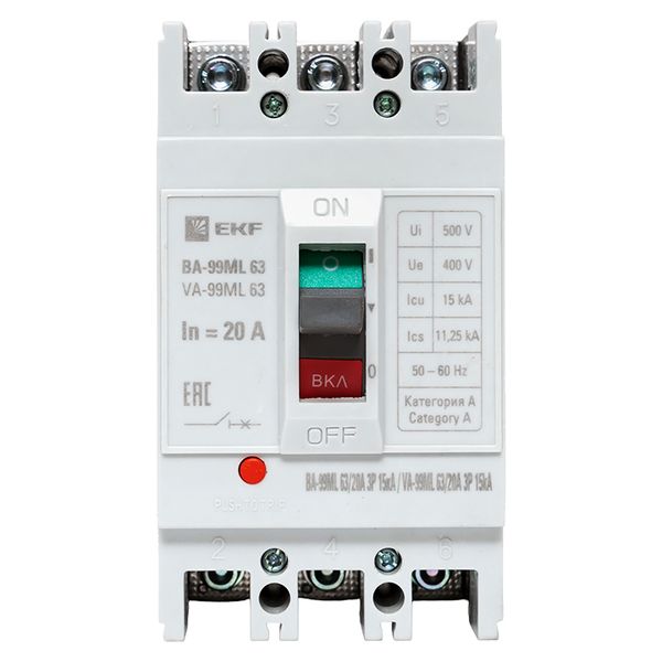 Автоматический выключатель ВА-99МL 63/ 20А 3P 15кА EKF Basic |