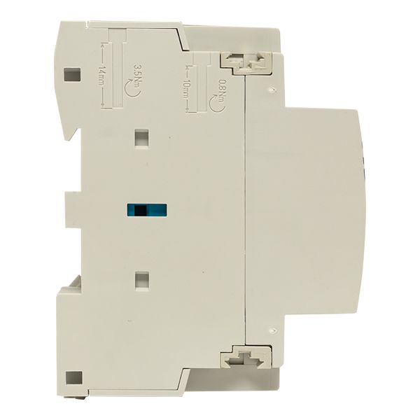 Модульные контакторы представляют из себя контактор в классическом корпусе модульного оборудования. Он состоит из неподвижных контактов, подвижных контактов, которые закреплены в подвижной части магнитной системы. Неподвижная часть магнитной системы закреплена жестко в корпусе КМ. Пружина препятствует смыканию контактов. При подаче напряжения на катушку управления в магнитной системе контактора возникает магнитное поле, которое, преодолевая сопротивление пружины, смыкает магнитную систему и замыкает контакты. При отключении напряжения с катушки управления пружина размыкает контакты. Возможна коммутация алюминиевым и медным проводом.