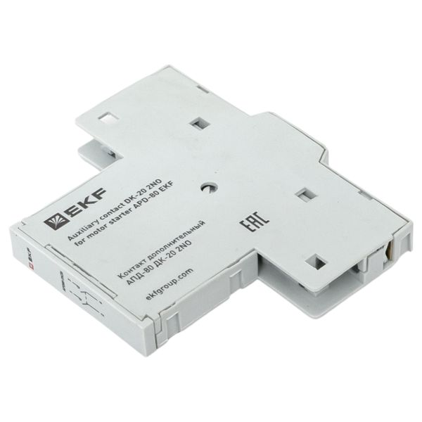 Контакт дополнительный АПД-80 ДК-20 2NO EKF. Дополнительное оборудование предназначается для контроля и упавления электрооборудованием, собранным на базе автомата пуска двигателя серии АПД‑80 EKF Proxima, используется в системах автоматизации технологического оборудования. Дополнительное оборудование в комплект с АПД не входит и поставляется отдельно.