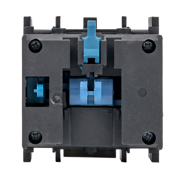 Позволяют получить задержку замыкания или размыкания вспомогательной цепи от 0,1 до 180 с. Приставка имеет один нормально разомкнутый (NO) и один нормально замкнутый (NC) контакт. Контактная приставка механически соединяется с контакто- рами и фиксируется при помощи защелки. Способ крепления обеспечивает жесткую и надежную связь между контактной приставкой и контактором.