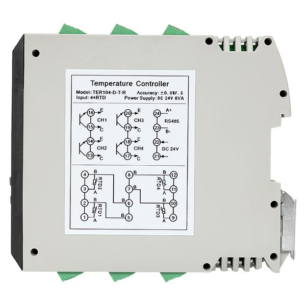 Микропроцессорные устройства, предназначенные для контроля и автоматического регулирования температуры. Приборы TER104 могут использоваться для 4-канального измерения и регулирования температуры в системах отопления, водоснабжения, в печах, сушильных шкафах, пастеризаторах, терпопластавтоматах, экструдерах, в холодильной технике и другом технологическом оборудовании. Каналы работают независимо друг от друга и могут контролировать температуру разных технологических процессов. Устройства универсальны и могут работать в режиме измерителя, ON/OFF-регулятора и ПИД-регулятора. В режиме регулятора прибор может работать как для нагрева, так и для охлаждения контролируемой среды. В режиме ПИД-регулятора устройство имеет возможность как ручной, так и автоматической настройки. Устройство имеет 4 входа для измерения и 4 выхода для управления. Встроенный интерфейс RS-485 (протокол Modbus RTU) позволяет использовать TER104 в распределенных системах диспетчеризации. Устройства имеют компактный корпус и устанавливаются на стандартную DIN-рейку.
