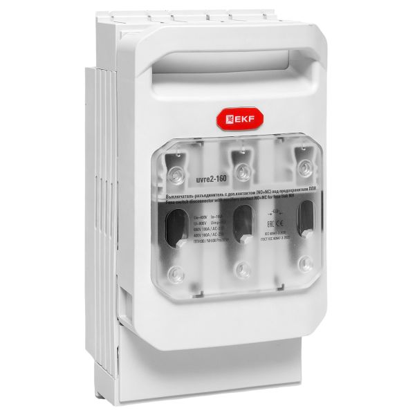 Выключатель-разъединитель УВРЭ v2 160А с дополнительным контактом (NO+NC) откидного типа под предохранители ППН (габ.00) EKF |