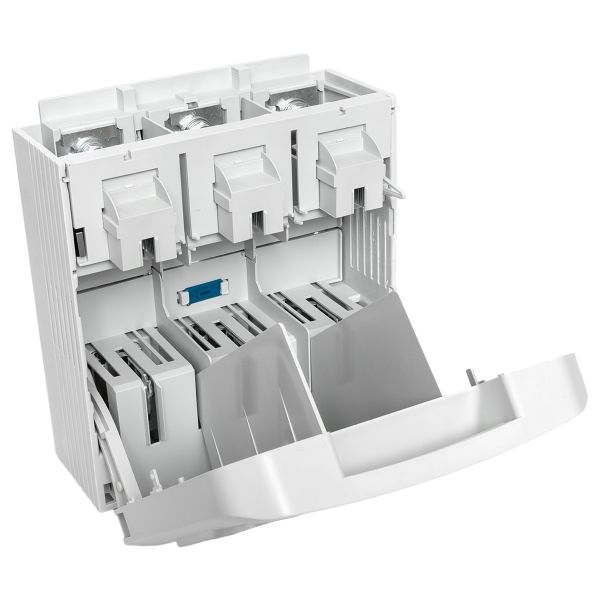 Выключатели-разъединители УВРЭ v2 с дополнительным контактом (NO+NC) откидного типа под предохранители ППН EKF (далее - УВРЭ v2) предназначены для ручного включения-отключения и для защиты от коротких замыканий и перегрузки цепей переменного тока номинальным напряжением до 690В частотой 50Гц (предохранители в комплект поставки не включены). Применяются в вводно-распределительных устройствах, распределительных и шкафах управления и др. Видимый разрыв обеспечивается благодаря откидной крышке, оснащенной держателями предохранителей. При открывании крышки происходит разрыв цепи (первый разрыв происходит в верхней части). Она также выполняет функцию фронтальной защиты от прикосновений.