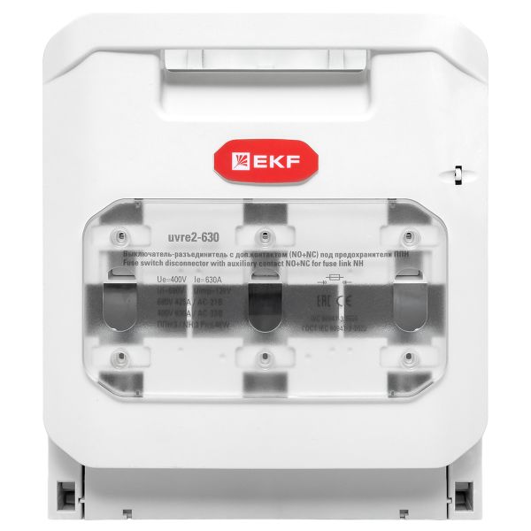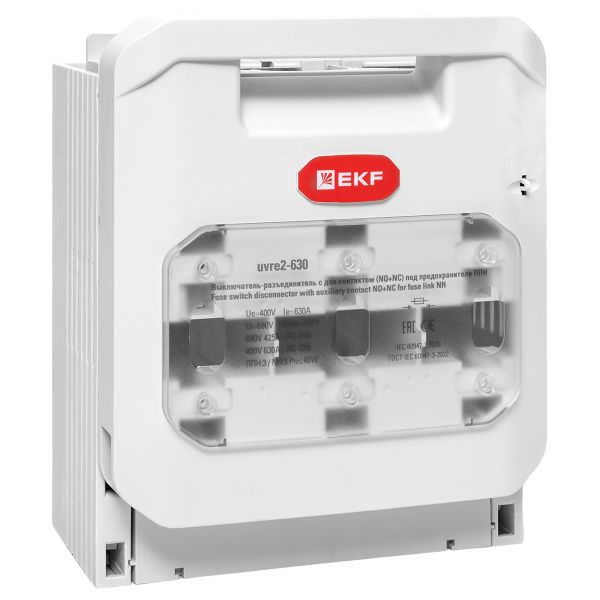 Выключатель-разъединитель УВРЭ v2 630А с дополнительным контактом (NO+NC) откидного типа под предохранители ППН (габ.3) EKF