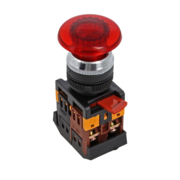 Кнопки типа Грибок применяются в электрических цепях переменного тока частотой 50/60 Гц с напряжением до 660 В и постоянным напряжением до 400 В. Исполнение такого типа ( активная часть выступает) позволяет простым нажатием быстро подать управляющий сигнал на оборудование. Включение кнопки облегчается за счет большой площади поверхности нажатия.
