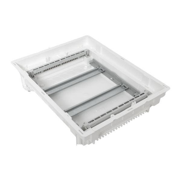 Корпуса пластиковые серии «Nova» предназначены для сборки силовых, слаботочных и комбинированных щитов. На DIN-рейки устанавливается модульное оборудование. На монтажные платы – антенные разветвители, Wi-Fi роутеры, патч-панели и иное слаботочное оборудование. Щиты устанавливаются как в бетонные и кирпичные стены, так и в гипсокартон, монтажные комплекты для установки в гипсокартон входят в комплектацию оснований щитов либо в комплектацию щитов в сборе. Двери щитов можно выбрать их разных материалов – пластик, металл или металл с перфорацией. Также доступны дополнительные аксессуары, необходимые для установки мультимедийного оборудования и существенно упрощающих монтаж щитов. Есть возможность приобрести как отдельно основание щита и дверь, так и основание с дверью в комплекте в одной коробке. Основные преимущества: съемные шасси с din-рейками, съемные кабельные фланцы, гребенка для фиксации входящих проводников, регулировка дверей по глубине, современный минималистичный дизайн