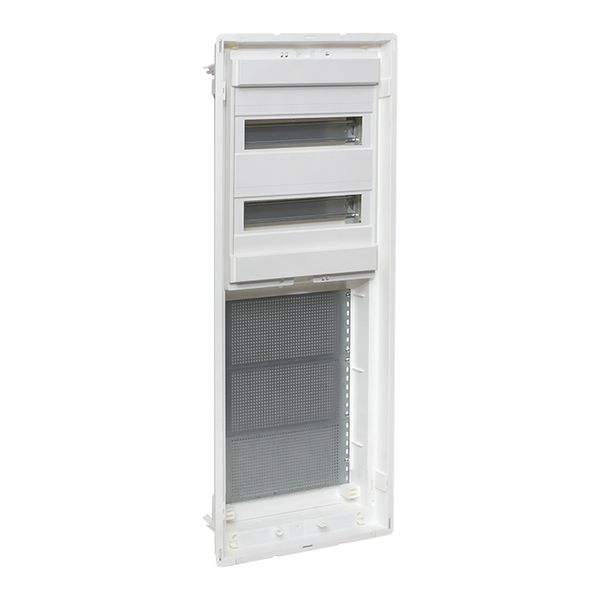 Корпуса пластиковые серии «Nova» предназначены для сборки силовых, слаботочных и комбинированных щитов. На DIN-рейки устанавливается модульное оборудование. На монтажные платы – антенные разветвители, Wi-Fi роутеры, патч-панели и иное слаботочное оборудование. Щиты устанавливаются как в бетонные и кирпичные стены, так и в гипсокартон, монтажные комплекты для установки в гипсокартон входят в комплектацию оснований щитов либо в комплектацию щитов в сборе. Двери щитов можно выбрать их разных материалов – пластик, металл или металл с перфорацией. Также доступны дополнительные аксессуары, необходимые для установки мультимедийного оборудования и существенно упрощающих монтаж щитов. Есть возможность приобрести как отдельно основание щита и дверь, так и основание с дверью в комплекте в одной коробке. Основные преимущества: съемные шасси с din-рейками, съемные кабельные фланцы, гребенка для фиксации входящих проводников, регулировка дверей по глубине, современный минималистичный дизайн