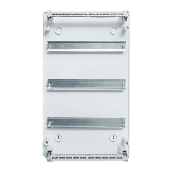 Корпуса пластиковые серии «Unix IP41» предназначены для сборки силовых распределительных и слаботочных щитов. На DIN-рейки устанавливается модульное оборудование. На монтажные платы - антенные разветвители, Wi-Fi роутеры, патч-панели и иное слаботочное оборудование. Щиты устанавливаются на поверхность стены. Ассортимент корпусов с din-рейками представлен размерами вместимостью до 72 модулей, по 12 или 18 модулей в ряду, с белой глухой или прозрачной тонированной дверью, с DIN-рейками или перфлорированными монтажными платами. Особенностью корпусов является плоское основание, упрощающее сборку и подключения внутри, лицевая панель Корпуса изготовлены из качественного глянцевого ABS-пластика, имеют минималистичный дизайн и впишутся в большинство интерьеров.