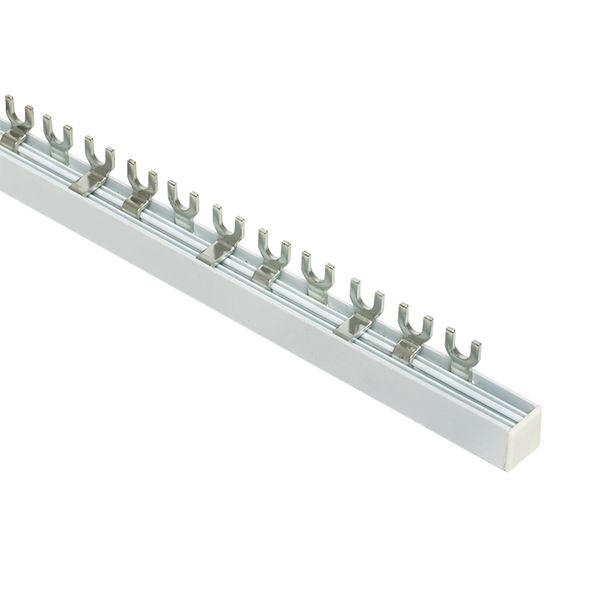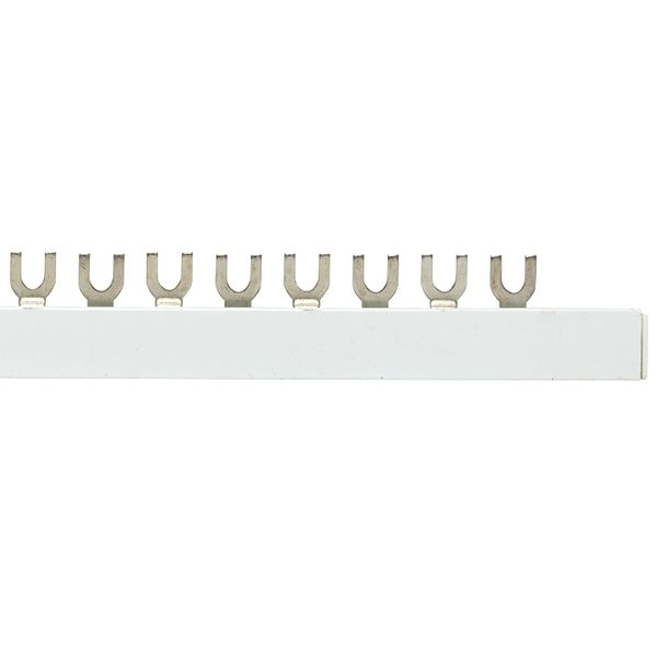 Шины соединительные представляют собой пластины, выполненные из меди (шины на 100 А – из луженой меди), закрепленные в корпусе из диэлектрического материала, не поддерживающего горение, и выпускаются стандартной длиной 1 метр. Шины соединительные делятся на два типа - FORK («вилка») и PIN («гребенка») на номинальные токи 63 и 100 А. Могут быть выполнены в одно- двух- трех- и четырехполюсном исполнений.