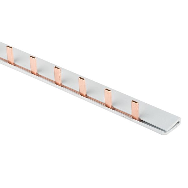 Шины соединительные представляют собой пластины, выполненные из меди (шины на 100 А – из луженой меди), закрепленные в корпусе из диэлектрического материала, не поддерживающего горение, и выпускаются стандартной длиной 1 метр. Шины соединительные делятся на два типа - FORK («вилка») и PIN («гребенка») на номинальные токи 63 и 100 А. Могут быть выполнены в одно- двух- трех- и четырехполюсном исполнений.
