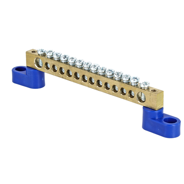 Шина "0" N (6х9мм) 14 отверстий латунь 2 синих угловых изолятора EKF PROxima