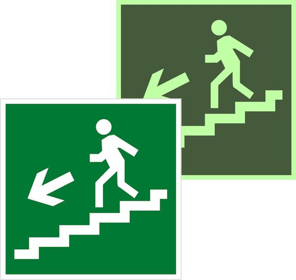 Знак наклейка E14 "Направление к эвакуационному выходу по лестнице вниз налево" (150х150) фотолюминесцентный ГОСТ 12.4.026-2015 EKF PROxima |