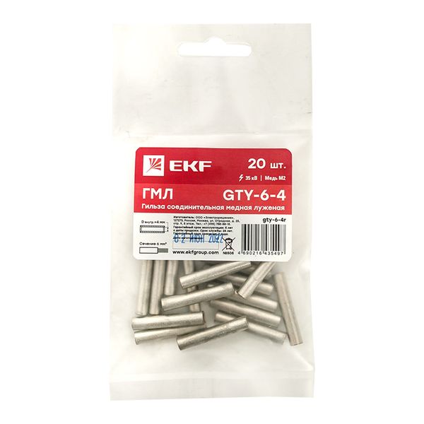 Гильза соединительная медная луженая GTY-6-4 (ГМЛ) (20шт.) EKF PROxima |