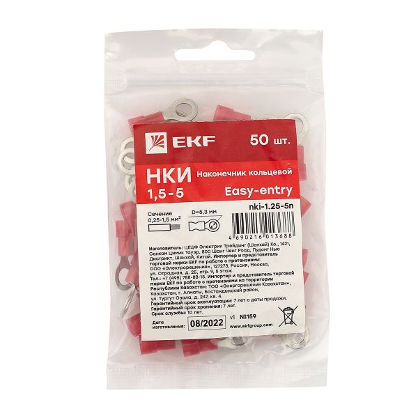 Наконечник кольцевой изолированный НКИ 1.5-5 (50шт.) EKF PROxima |