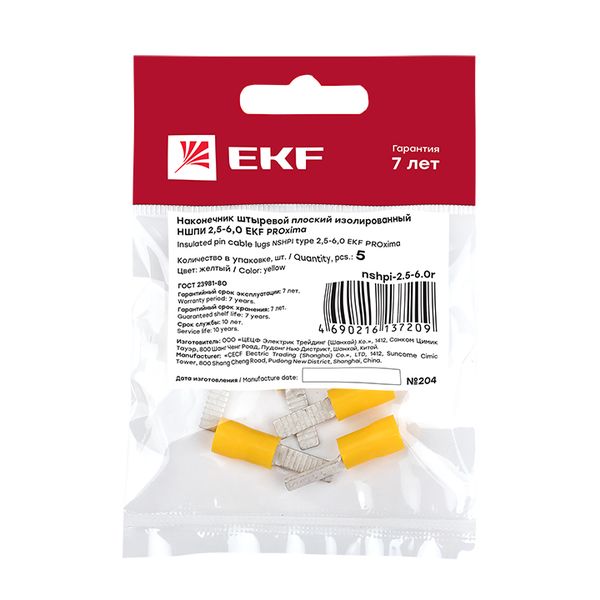 Наконечник штыревой плоский изолированный НШПИ 2.5-6.0 (уп 5шт) EKF PROxima |