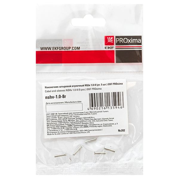 Наконечник штыревой втулочный НШв 1.0-8 (уп5шт) EKF PROxima |