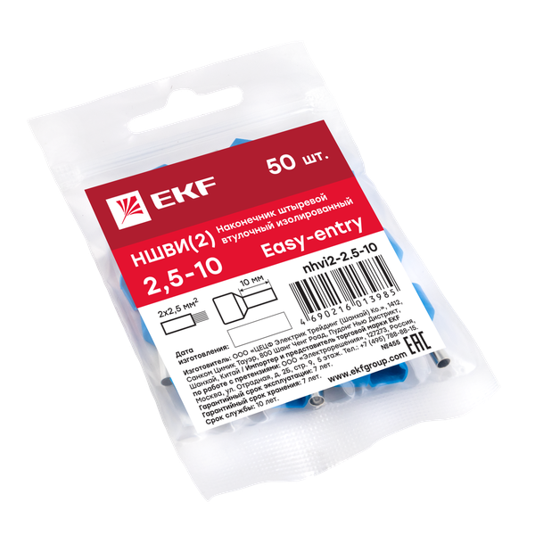 Наконечник штыревой втулочный изолированный НШвИ(2) 2,5-10 (50шт.) EKF PROxima |