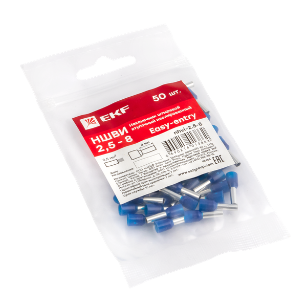 Наконечник штыревой втулочный изолированный НШвИ 2,5-8 (50шт.) EKF PROxima