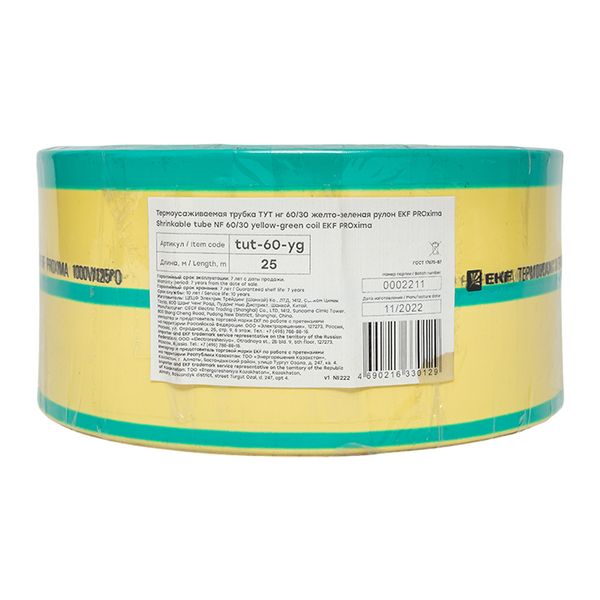 Термоусаживаемая трубка ТУТ нг 60/30 жел-зел рулон EKF PROxima |