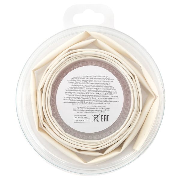 Термоусаживаемая трубка ТУТ нг 6/3 белая ролик 2 м EKF