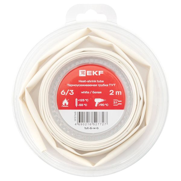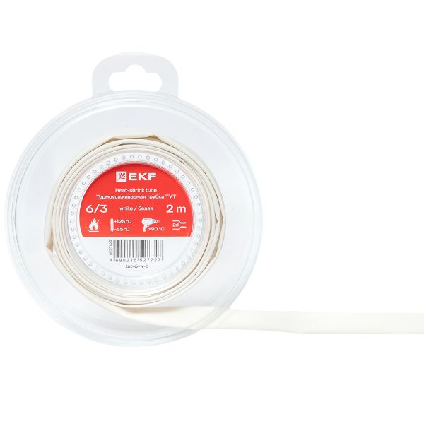 Термоусаживаемая трубка ТУТ нг 6/3 белая ролик 2 м EKF |