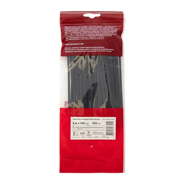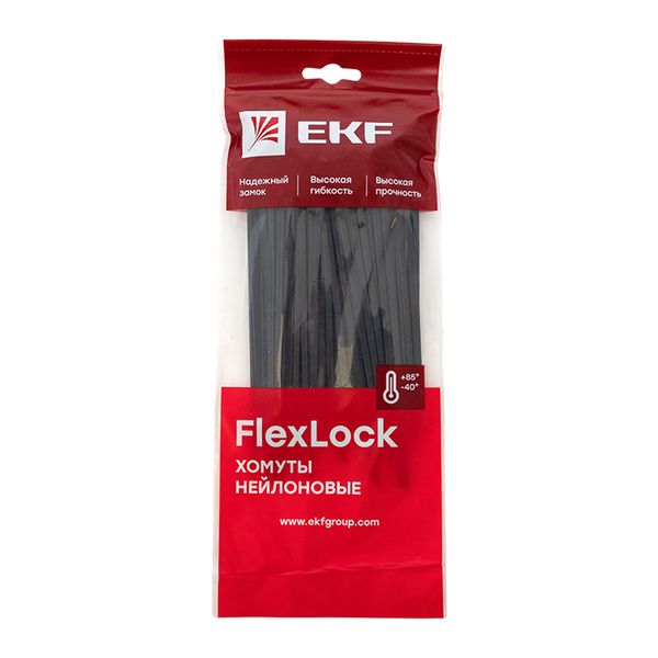 Хомут P6.6 стандартный (ч), 3.6x150 (100шт) FlexLock EKF