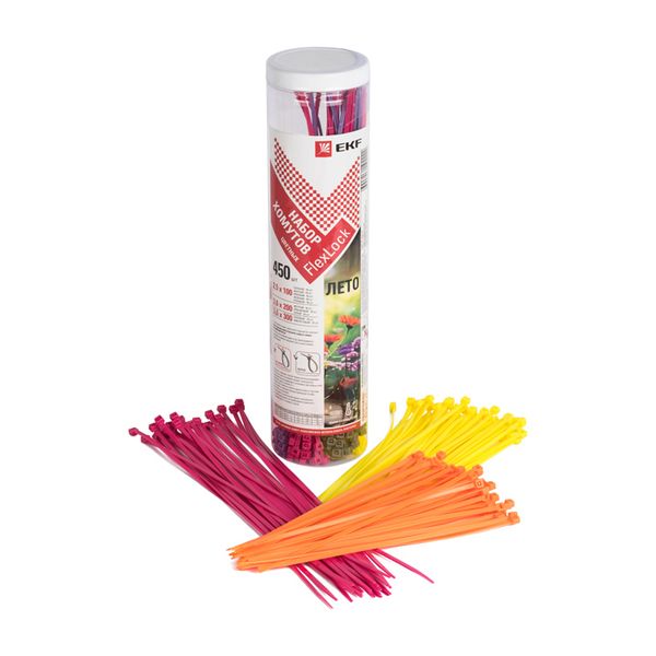 Набор хомутов цветных "Лето" (450 шт.): 2,5х100, 3,6х200, 3,6х300 FlexLock PROxima