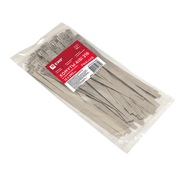 Хомут AISI 316 из нержавеющей стали, 12x290 (100 шт.) FlexLock PROxima