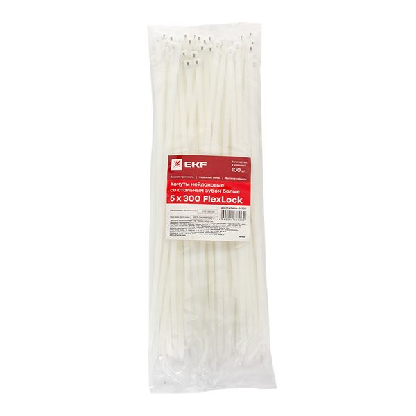 Хомут нейлоновый со стальным зубом (б), 5x300 (100шт) EKF PROxima