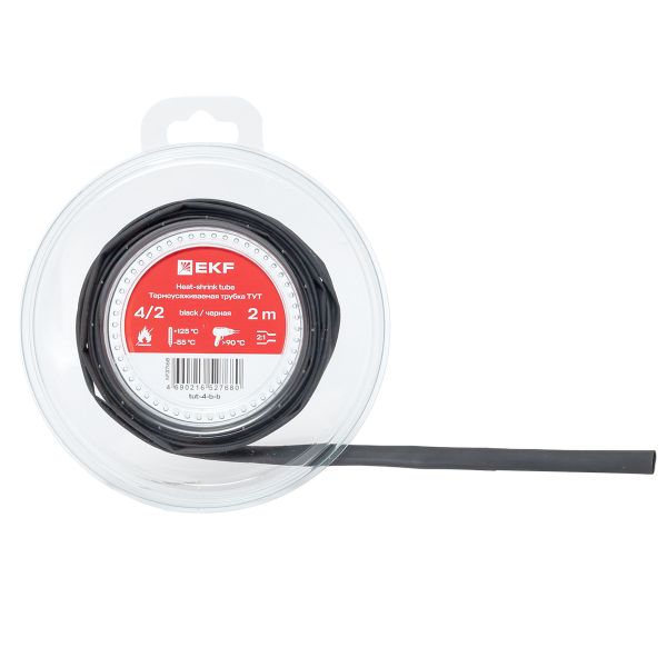 Термоусаживаемая трубка ТУТ нг 4/2 черная ролик 2 м EKF |