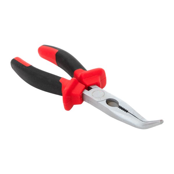 Длинногубцы изогнутые используются для захвата и удержания мелких элементов, проволоки, колец, винтиков и выполнения различных работ в труднодоступных местах.