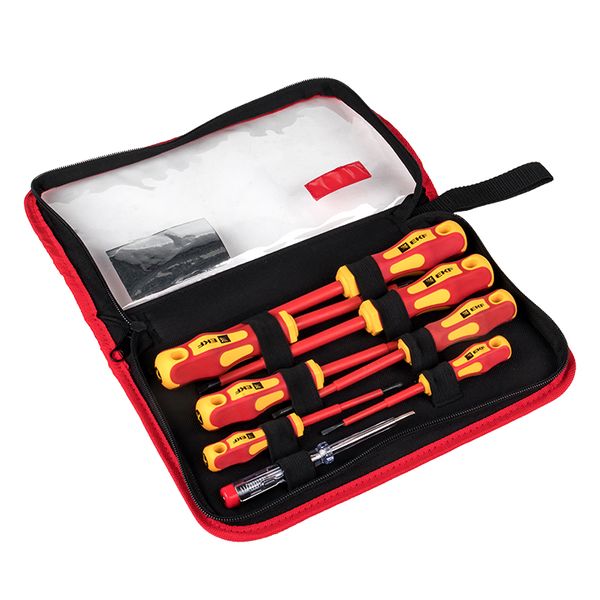 Мы предлагаем оптимальный ассортимент для выполнения большинства задач, стоящих как перед профессиональным электромонтажником, так и перед домашним мастером, а также наилучшее решение для компактного хранения инструмента и его удобной переноски- мягкий пенал, отшитый из современных синтетических водо-и грязеотталкивающих тканей с мягкой подкладкой. Для каждого предмета предусмотрена своя ячейка- инструмент не потеряется после работы.