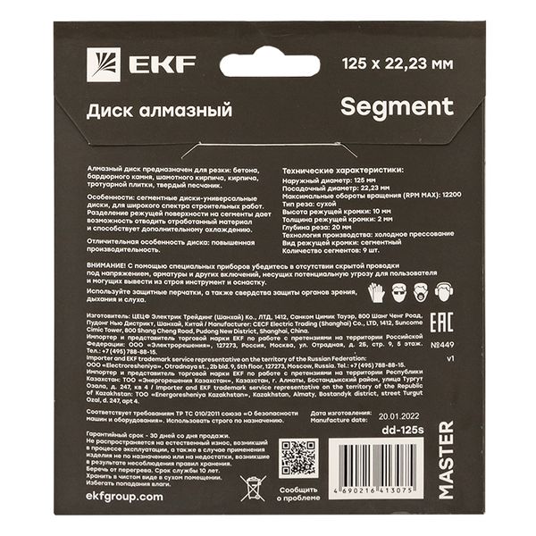 Диск алмазный Segment (125х22.23 мм) EKF Master |