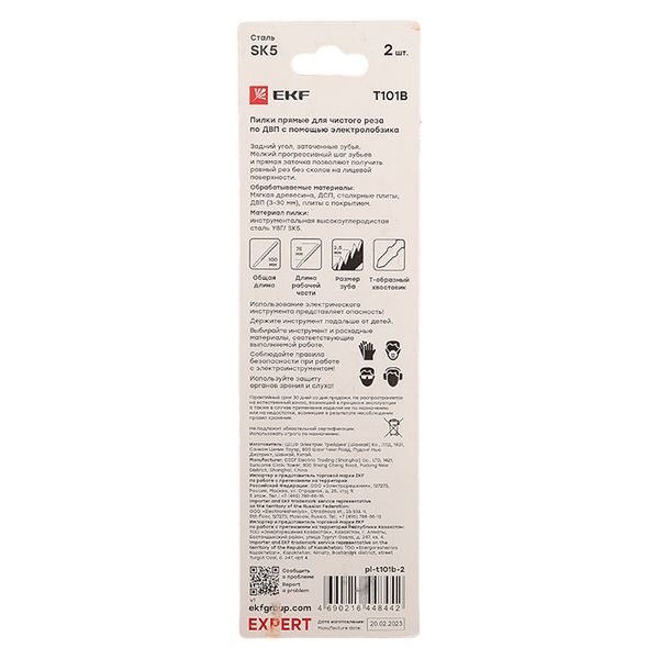 Пилки для электролобзика прямые T101B (чистовой рез по ДВП)(SK5)(2 шт) EKF Expert |