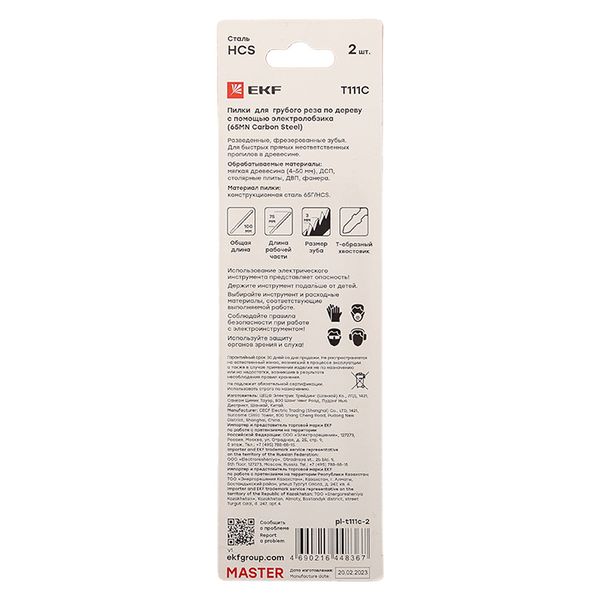 Пилки для электролобзика T111C (грубый рез по дереву)(HCS)(2 шт) EKF Master |