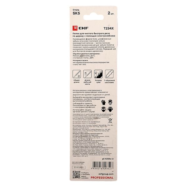 Пилки для электролобзика T234X (быстрый чистовой рез по дереву)(SK5)(2 шт) EKF Professional |