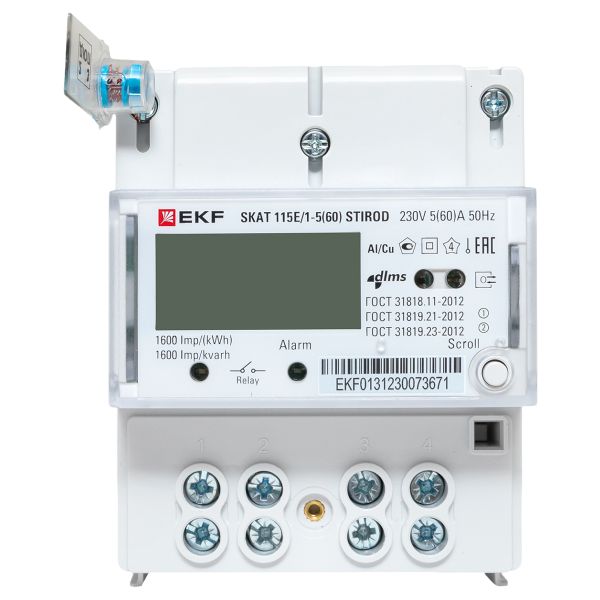 Счетчик электрической энергии однофазный многотарифный SKAT 115E/1-5(60) STIROD (встроенное реле) EKF 2т МСК+0