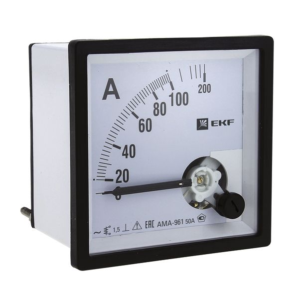 Амперметр AMA-961 аналоговый на панель (96х96) квадратный вырез 150А трансф. подкл. EKF |