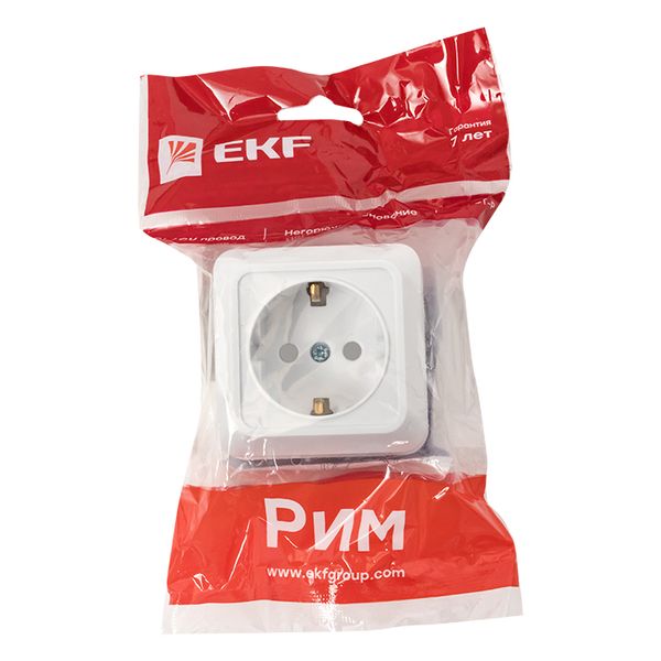 Рим Розетка 1-местная 16А с заземлением белая с защ. штор. EKF |