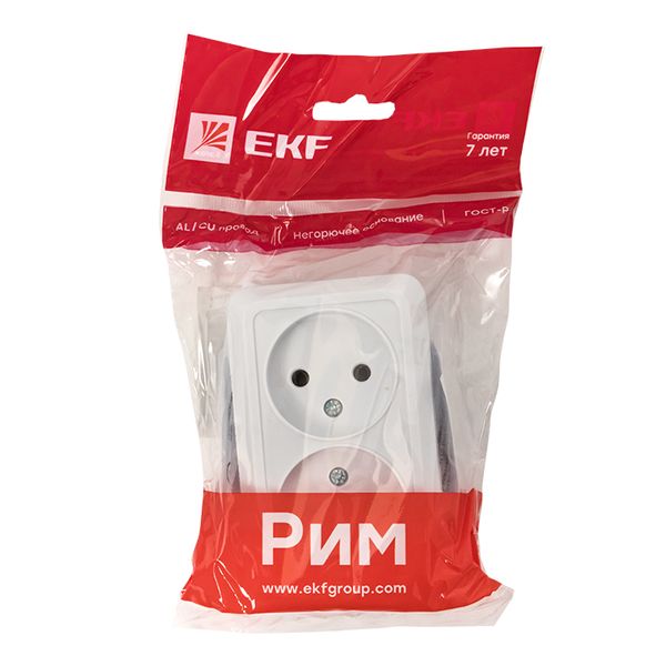 Рим Розетка 2-местная 10А без заземления керам. белая EKF PROxima |