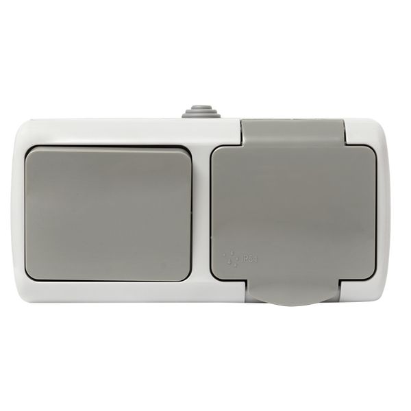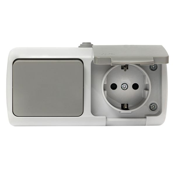 Мурманск Блок розетка 1-м 16А с заземлением с крышкой+ 1-кл выключатель IP54 серый EKF |