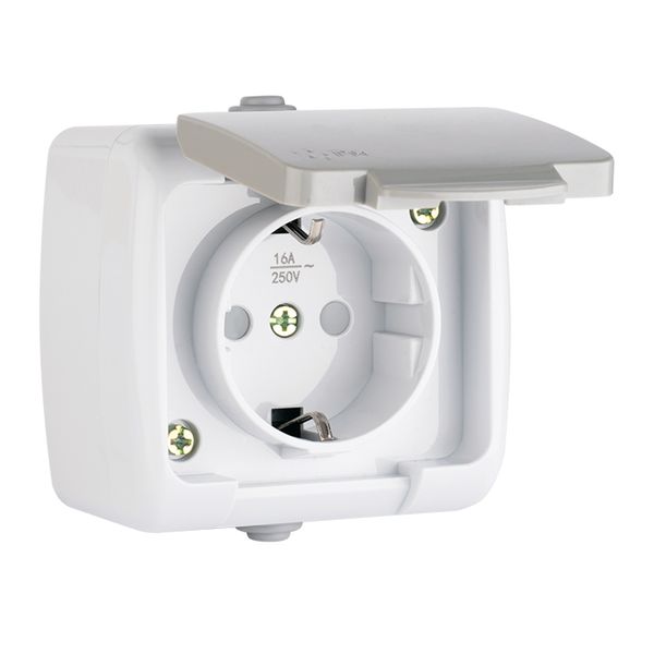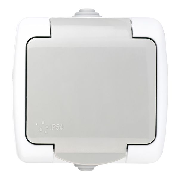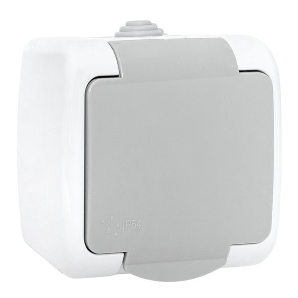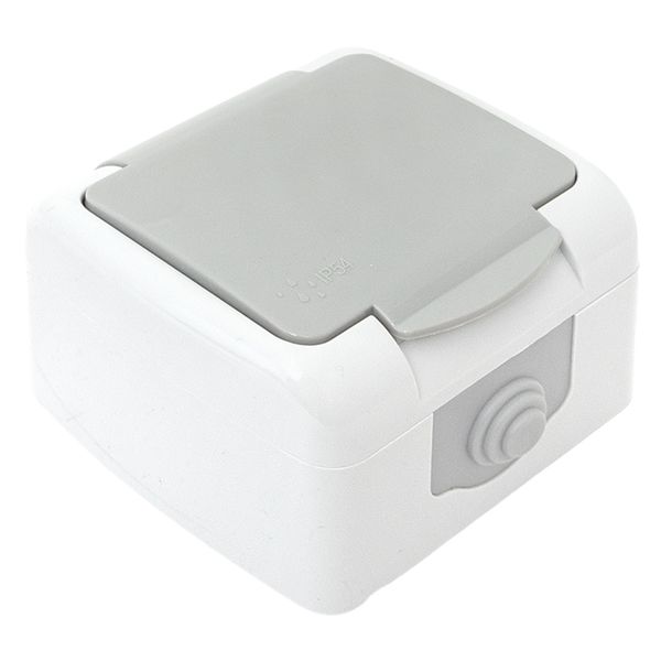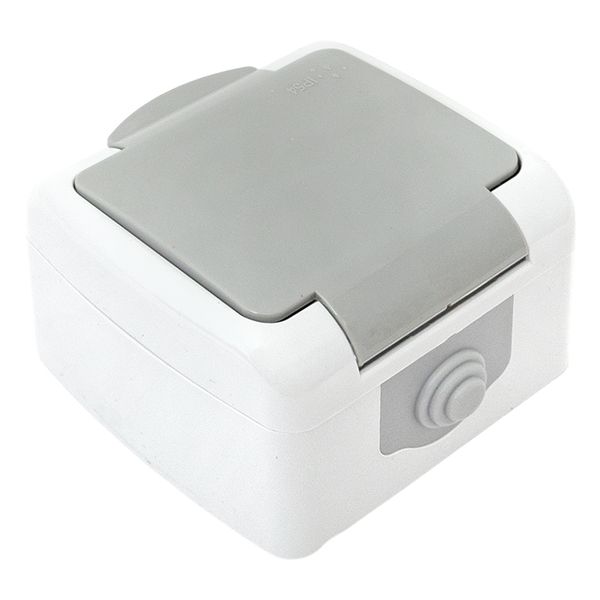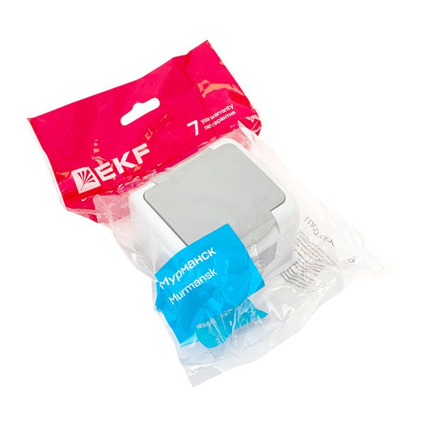 Мурманск Розетка 1-местная 16А с заземлением с крышкой IP54 серый с защитными шторками EKF |