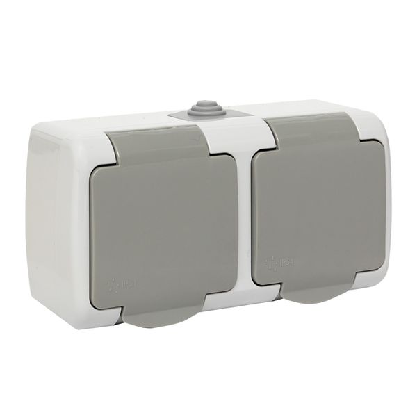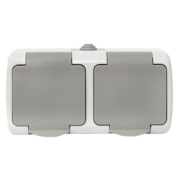 Мурманск Розетка 2-местная 16А с заземлением с крышкой IP54 серый с защитными шторками EKF |