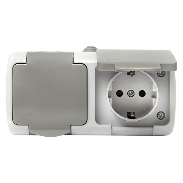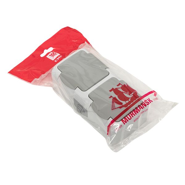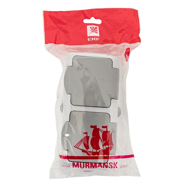 Мурманск Розетка 2-местная 16А с заземлением с крышкой IP54 серый с защитными шторками EKF